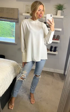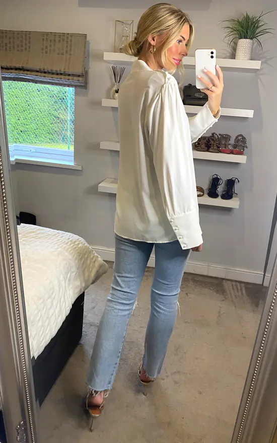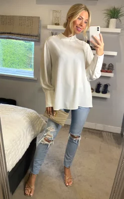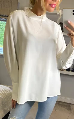 More standout than a classic blouse, thanks to the high-neck details. These details are chic, striking and perfect for the weekend!