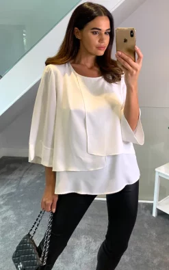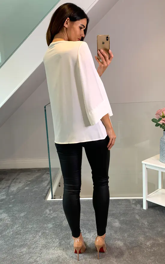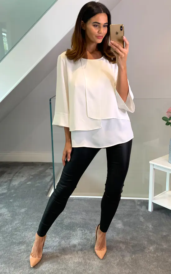 Layered Top With 3/4 Sleeves in White with Necklace perfectly fits for workplace and also classy piece for night outs, you can easily combine with basic jeans and tights. You can complete your look with basic necklace!