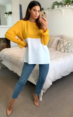 Long Sleeves Block top is perfect for a Autumn outfit night or day!