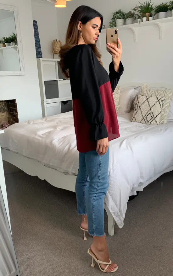 Product Code: 60208BLOUSEBLACKBURGUNDYNECKLACE
