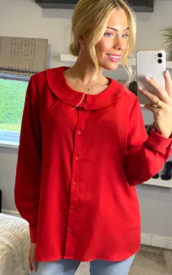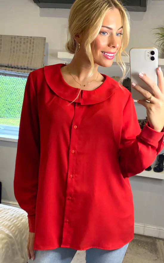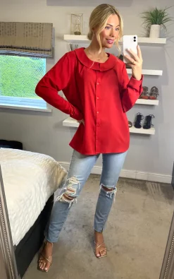 This Long Sleeves Detailed Collar Shirt in Red will be your favoUrite piece in your closet. Itβs very fashionable and If you match it with jeans, It can be so adorable!
