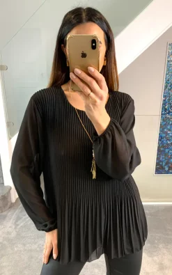 Long Sleeves Oversized Pleated Top with Necklace in Black is is the perfect choice from day to night. Wear it whether for brunch or date night!