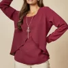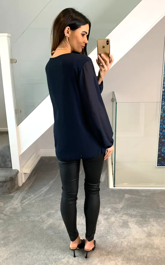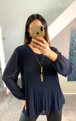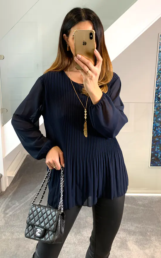 Long Sleeves Oversized Pleated Top with Necklace in Navy is the perfect choice from day to night. Wear it whether for brunch or date night!