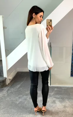 Long Sleeves Oversized Pleated Top with Necklace in White is the perfect choice from day to night. Wear it whether for brunch or date night!