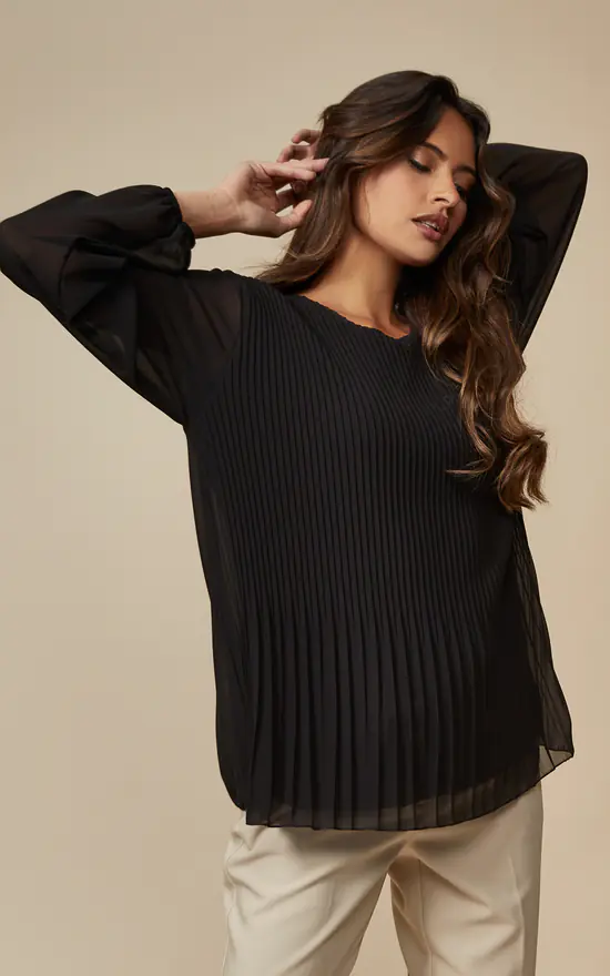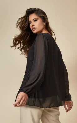 Long Sleeves Oversized Pleated Top with Tulle Details in Black is an elegant piece for special occasions. You can go night parties, day trips, birthday parties and any gathering!