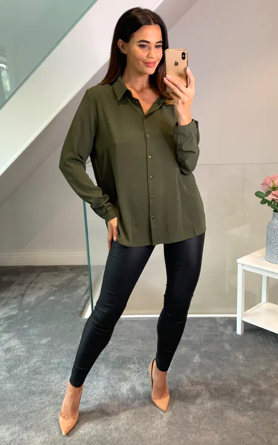 Oversized Shirt in Khaki is a piece that will make you look more stylish with it’s details!