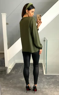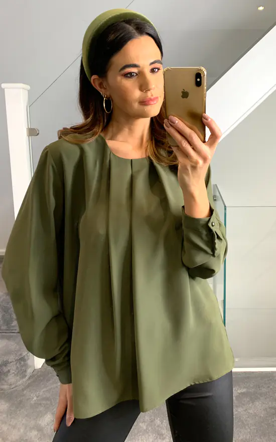 Long Sleeves Oversized Top with Details in Khaki creates a charming aura around you! This is a must have piece that can be combined in several different ways and must be in your wardrobe!