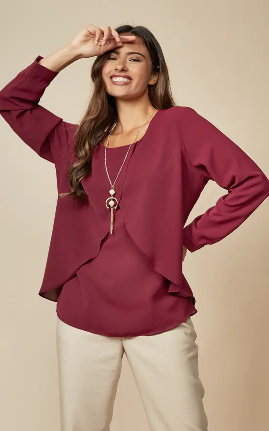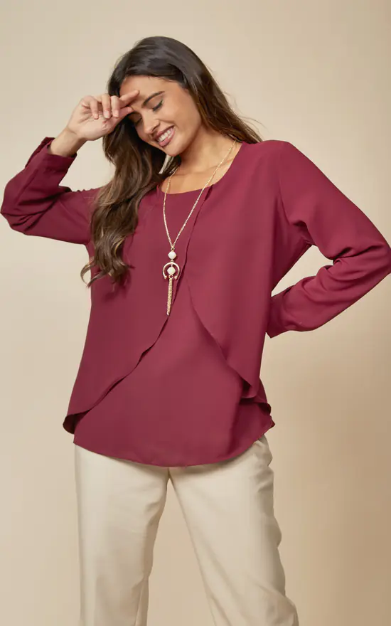 Long Sleeves Relaxed Fit Layered Top with Necklace is a must have piece that can be combined in several different ways and must be in your wardrobe!