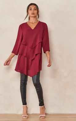 Oversized 3/4 Sleeves Layered V Neck Tunic Top in Burgundy is a wardrobe essential! Pair with jeans for a casual day look, it will be perfect for the autumn!