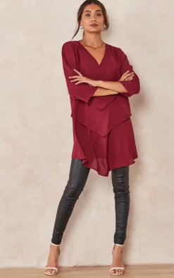 Oversized 3/4 Sleeves Layered V Neck Tunic Top in Burgundy is a wardrobe essential! Pair with jeans for a casual day look, it will be perfect for the autumn!