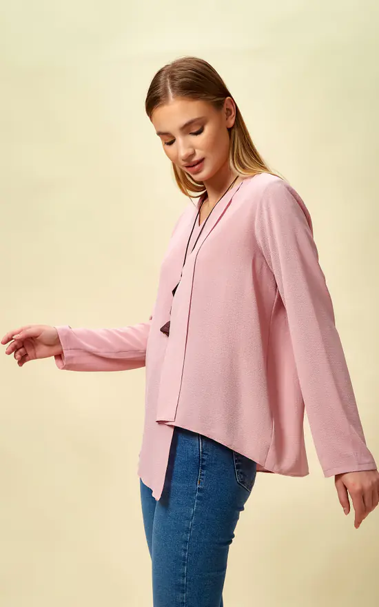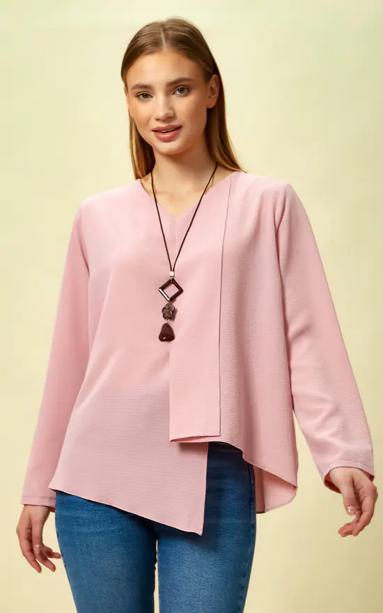 Oversized Asymmetric Top with Necklace in Pink is always a good choice for SAutumn/Winter nights. Asymmetric details makes difference showing itself more of it!