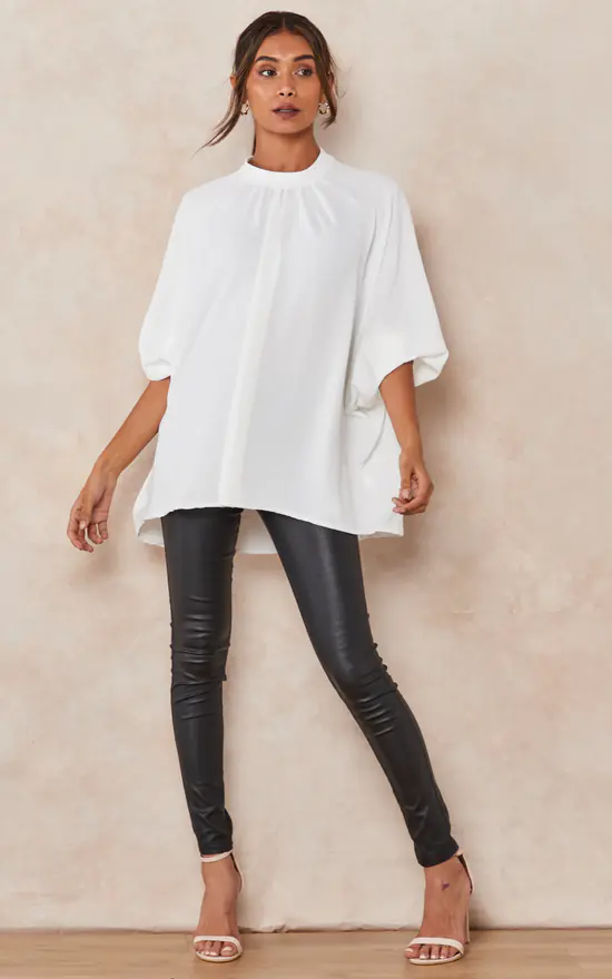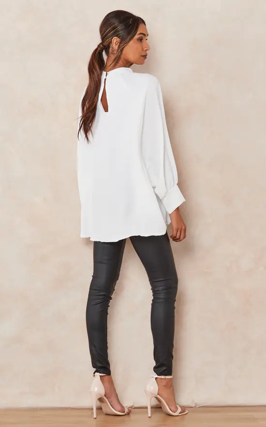 Oversized Batwing Long Sleeves Top with High Neck Detail is perfect for your office style with layer details and you can combine it with skinny jeans to catch a feminine look!
