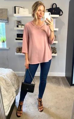 Oversized Top with Collar Details in Pink