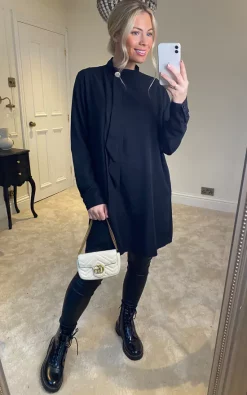 Oversized Brooch Detailed Long Sleeves Tunic Top in Black is the perfect addition to your wardrobe. It features a button details, long sleeves, and an oversized fit that is sure to turn heads!