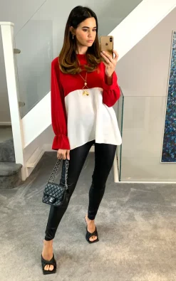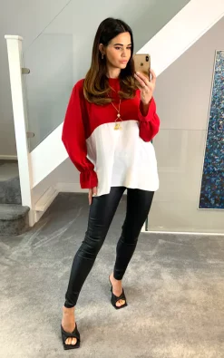 Oversized Colour Block Blouse in Red and White is a lovely comfy oversized fit, it’ll keep you comfortable wherever you go: from lounging on the sofa to going out for coffee. It’s lightweight fabric is perfect for summer garden parties. Designed for a relaxed fit.