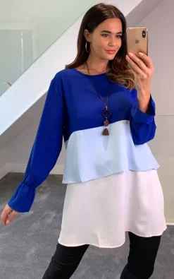 Oversized Colour Block Top in Navy, Blue and White with cute color transitions takes you out from monotone, regular look. You can feel very comfy with this piece in long days. It can be combined with jeans and basic shoes. A nice and simple necklace could be finishing touch on this combine.