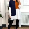 Oversized Colour Block Top in Navy, Light Pink and White with cute color transitions takes you out from monotone, regular look. You can feel very comfy with this piece in long days. It can be combined with jeans and basic shoes.