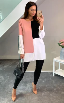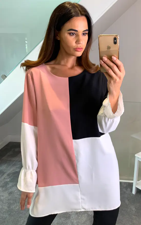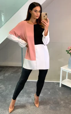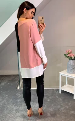 Oversized Colour Block Top in Pink and Black with cute color transitions takes you out from monotone, regular look. You can feel very comfy with this piece in long days. It can be combined with jeans and basic shoes. A nice and simple necklace could be finishing touch on this combine!
