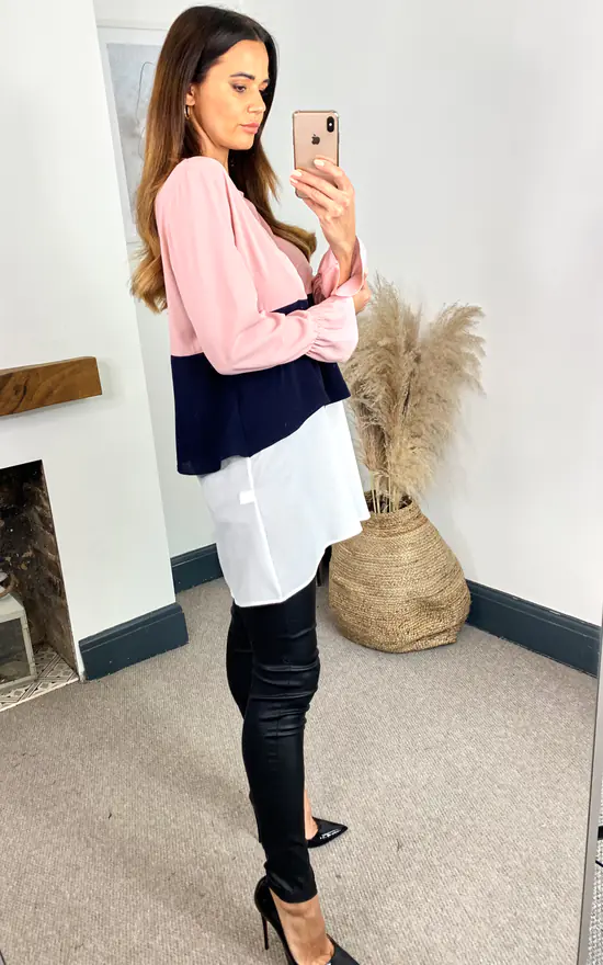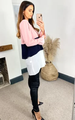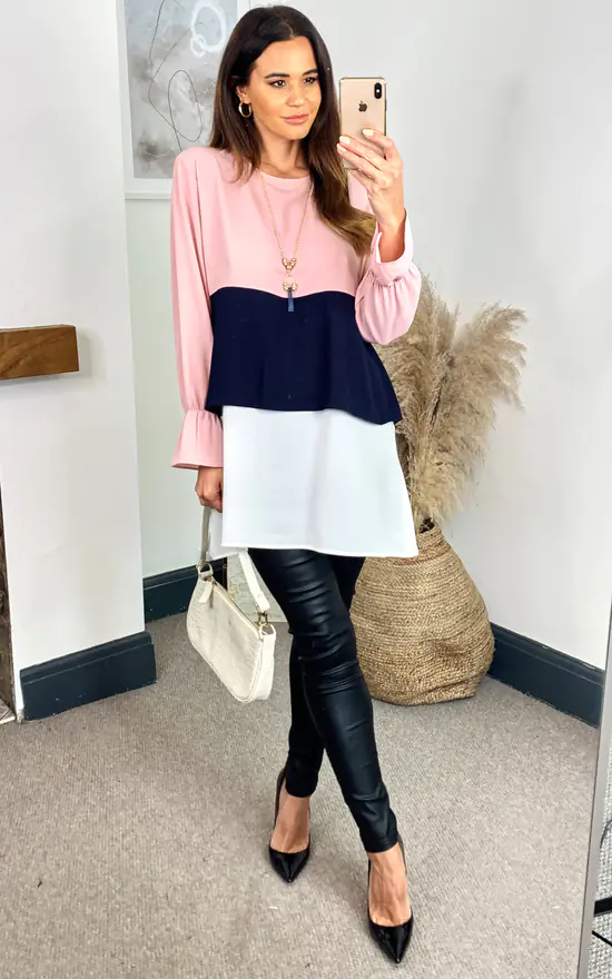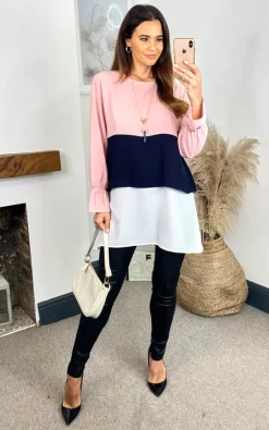 Oversized Colour Block Top in Pink, Black and White with Necklace