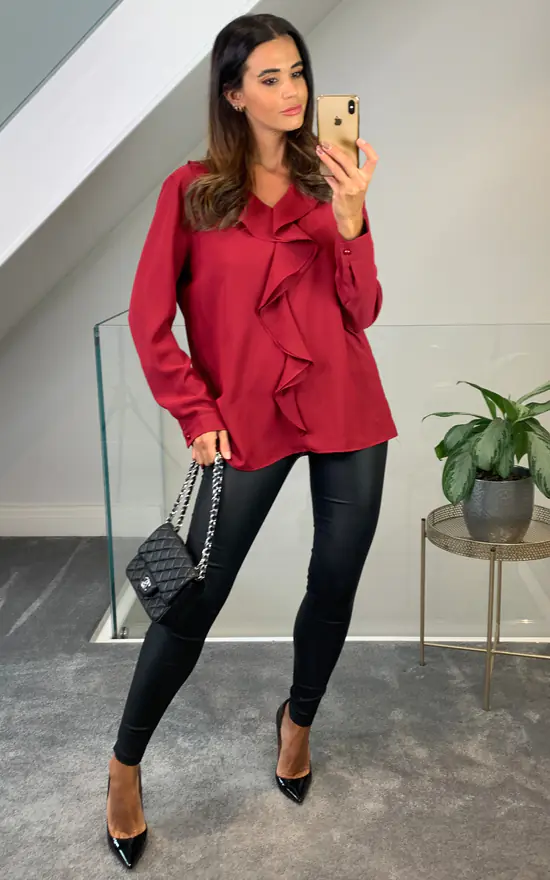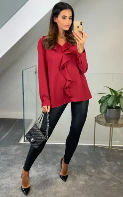 Oversized Top with Frilled Front can be combined with jeans and basic shoes. A nice and simple necklace could be finishing touch on this combine!