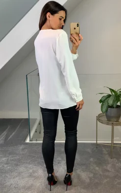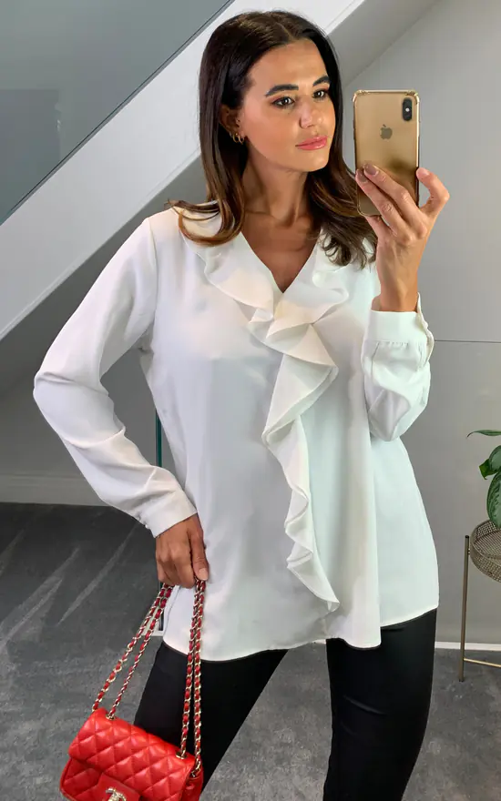Oversized Top with Frilled Front can be combined with jeans and basic shoes. A nice and simple necklace could be finishing touch on this combine!
