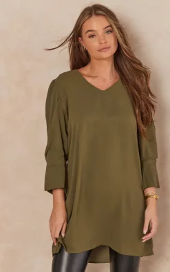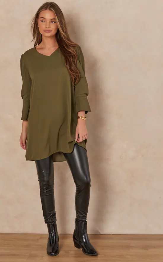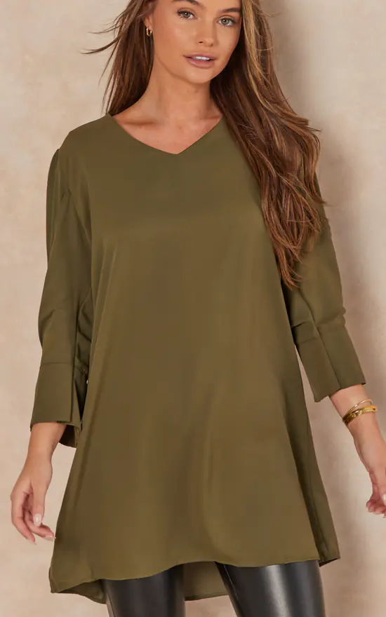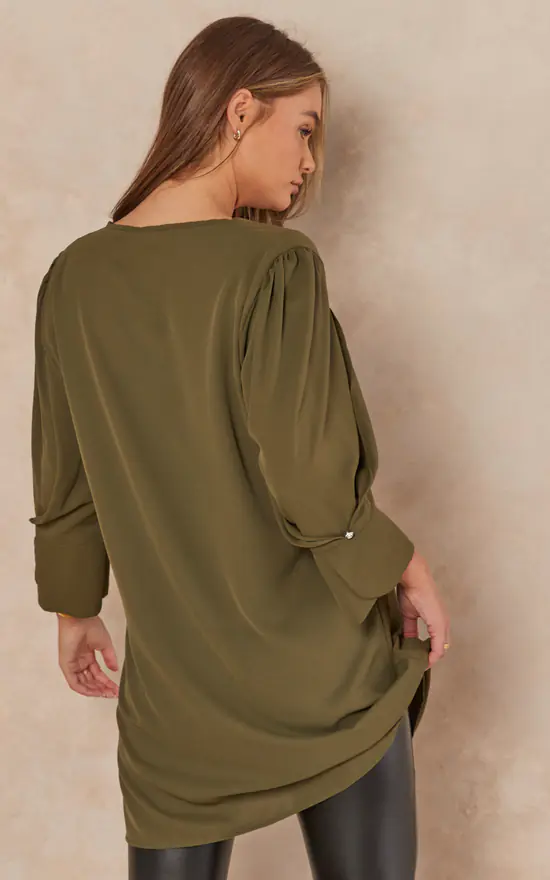 Oversized Detailed 3/4 Sleeves Tunic Top in Khaki will suit you anywhere you go! Combine it with jeans and high heels to fancy parties or keep it simple and wear it with your sneakers. This is the tunic everyone need in their wardrobes!