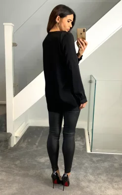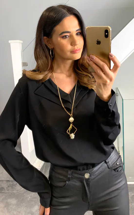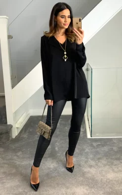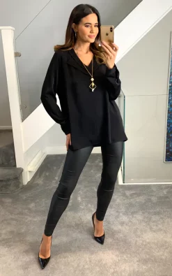 Oversized Detailed Collar Top with Long Sleeves in Black is very fashionable way for throw on and go! Its oversized form makes you comfy at work plus it can be very elegant for after work drinks!