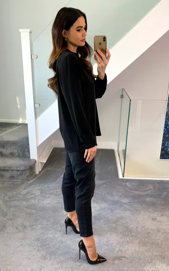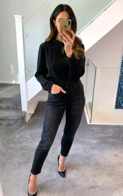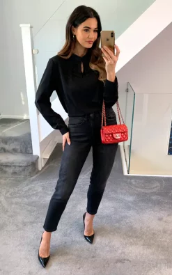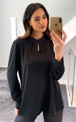 Perfect for workday stylings with tie details! You can combine it with boyfriend jeans to catch a masculine look or a stretch jean for a feminine look in autumn days!