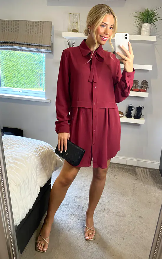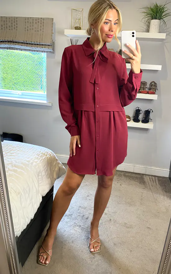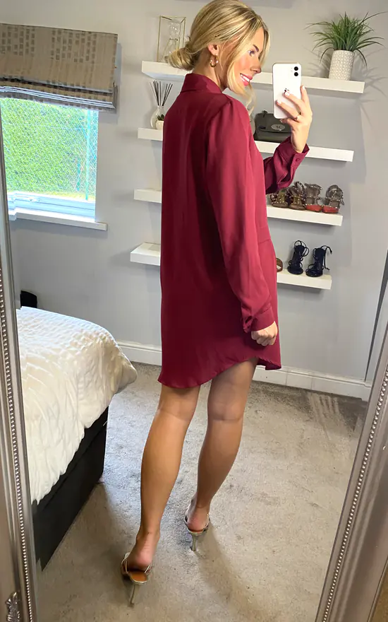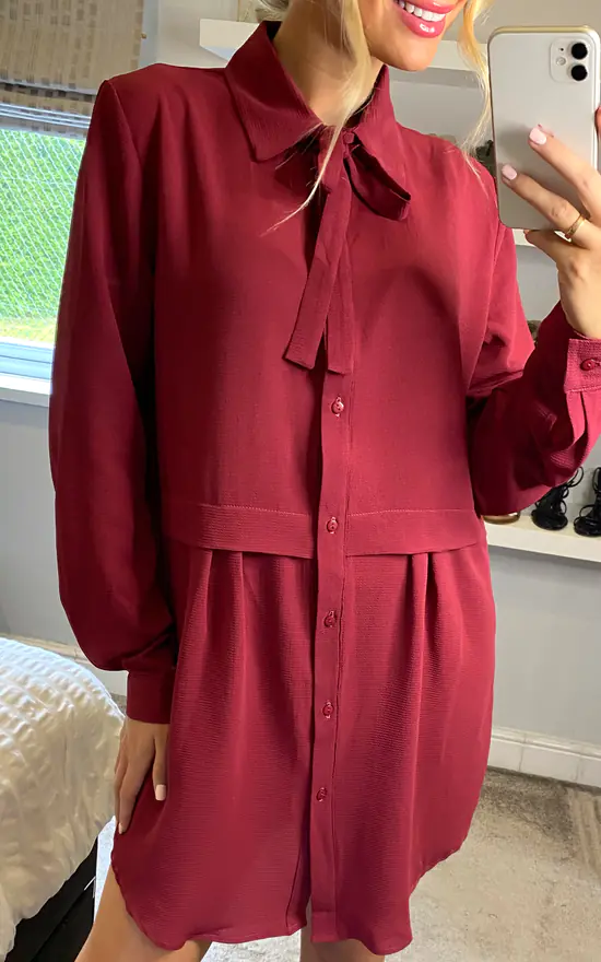 So easy to wear, you can match this Oversized Fit Tie Detailed Shirt Tunic in Burgundy with your favourite clutch and go on a date with your Officemates!