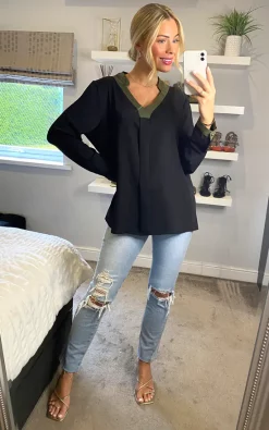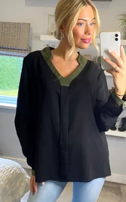 Product Code: 0080BLOUSEBLACKKHAKI-