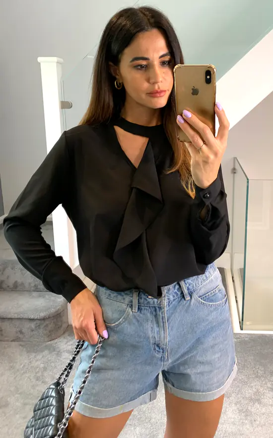 Made from a lightweight fabric, this blouse is perfect for warm weathers. Front frill detail adds in a youthful touch. Wear it with trousers and high heels for a night-out look!
