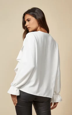 Oversized Frilled Front V Neck Top with Detailed Cuffs in White is lovely and has a comfy oversized fit. It will keep you comfortable wherever you go: from lounging on the sofa to going out for coffee. The perfect choice for work as well as family lunch!