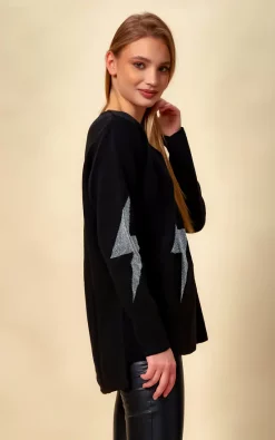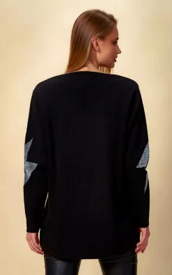 Oversized Long Sleeves Flash Top with V Neck in Black