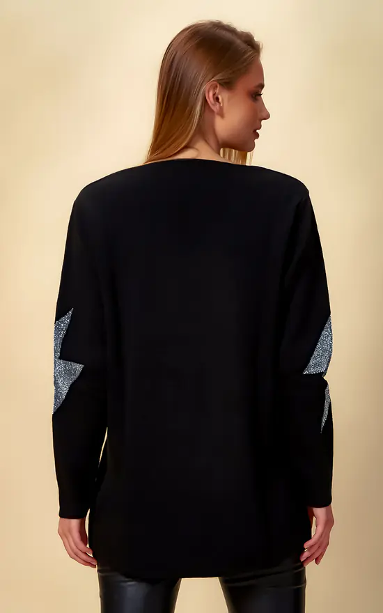 Oversized Long Sleeves Flash Top with V Neck in Black can be combined with jeans and basic shoes. A nice and simple necklace could be finishing touch on this combine!