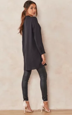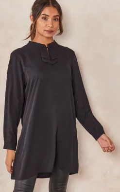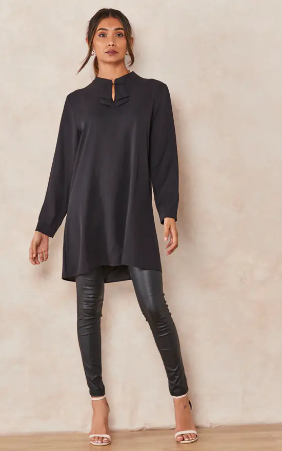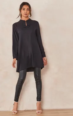 Oversized Long Sleeves Detailed Collar Tunic in Black is so easy to combine with leggings or jeans. You’ll love this chic and stylish tunic for all occasions!