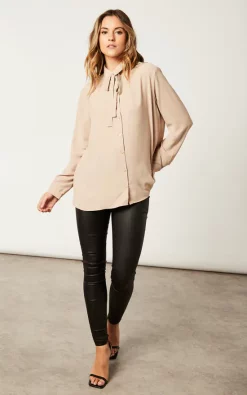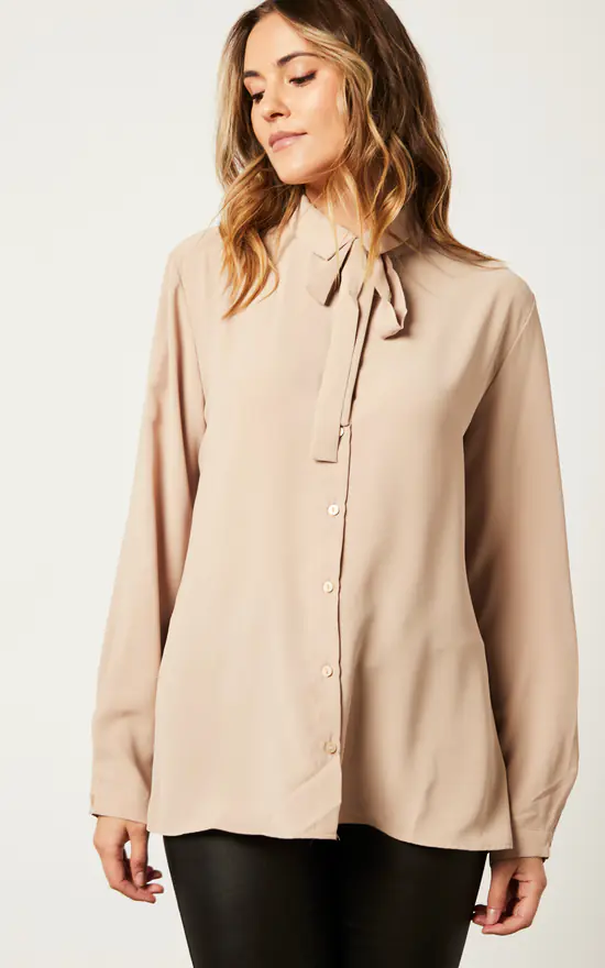 Oversized Long Sleeves Shirt Top with Matching Tie in Beige is designed to flatter your figure and showcase your beautiful neckline. The matching tie gives it an elegant feel, while the beige color means it’ll go with anything in your closet. It’s a must-have addition to any woman’s wardrobe!