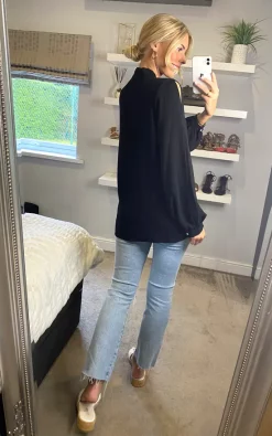 Oversized Long Sleeves Tie Neck Detailed Top in Black is easy to combine with skirts or jeans. Chic and stylish top for your office look! You’ll love it a much as we do!