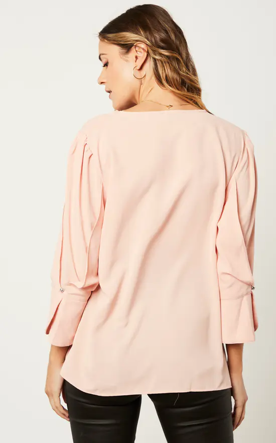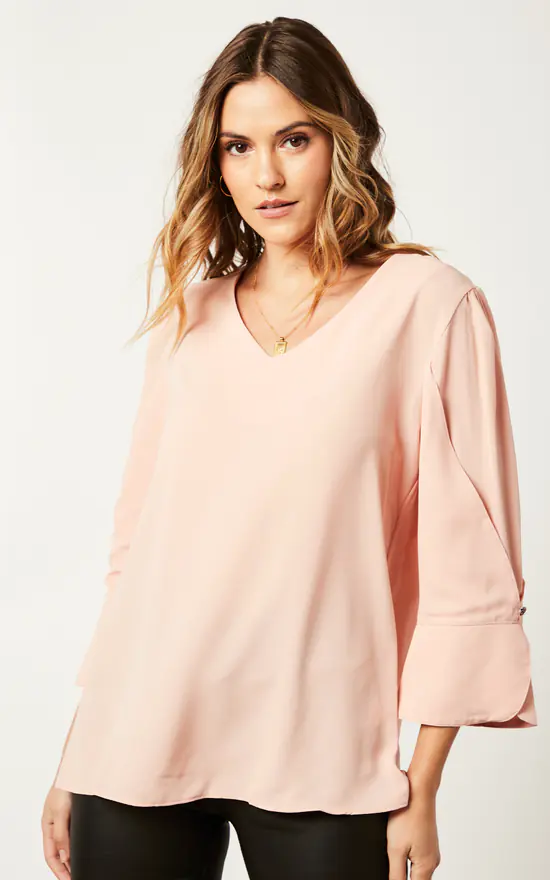 Our Oversized Long Sleeves V Neck Blouse with Detailed Cuffs is the perfect piece to throw on over your fave jeans or leggings. It features an oversized shape, long sleeves, and detailed cuffs!