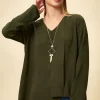 Oversized Long Sleeves V Neck Top with Button Details in Burgundy creates a charming aura around you!