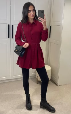 Oversized Long Slevees Pleated Shirt Top with Matching Belt in Burgundy is the perfect choice to dress up your wardrobe! The belt detail adds a little something special to an otherwise basic shirt. The long sleeves keep you cozy and warm during the chilly winter months!