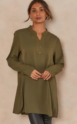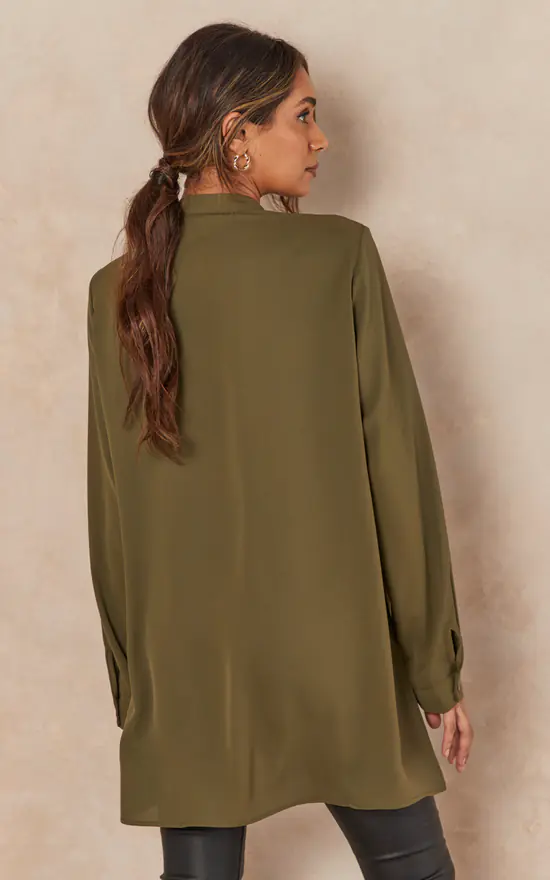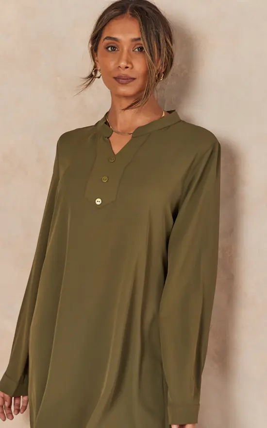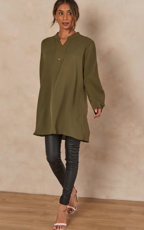 Oversized Long Sleeves Tunic with Button Details is this seasons must-have material with a frill. Pair with leggings or jeans for that glam look this Autumn!