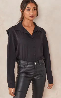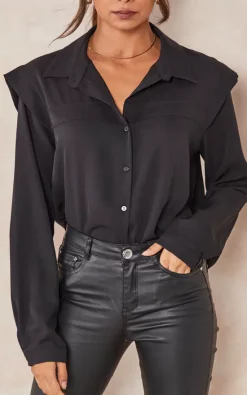 Oversized Shoulder Detailed Long Sleeves Shirt in Black is a must have piece that can be combined in several different ways and must be in your wardrobe!