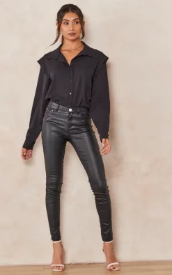 Oversized Shoulder Detailed Long Sleeves Shirt in Black is a must have piece that can be combined in several different ways and must be in your wardrobe!
