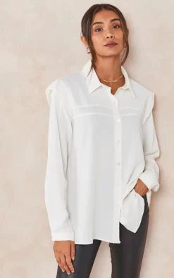 Oversized Shoulder Detailed Long Sleeves Shirt in White is a must have piece that can be combined in several different ways and must be in your wardrobe!