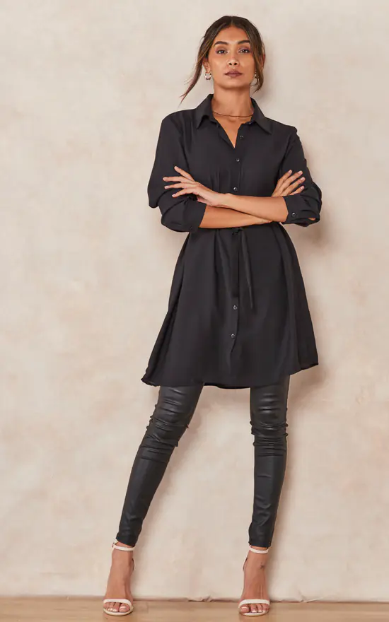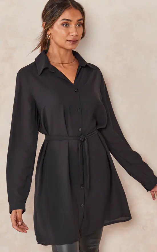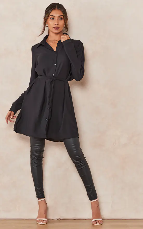 This Oversized Tie Detailed Shirt Tunic with Long Sleeves in Black is the perfect choice to dress up your wardrobe! The tie detail adds a little something special to an otherwise basic shirt. The long sleeves keep you cozy and warm during the chilly winter months!