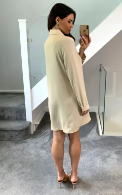 Oversized Belt Detailed Tunic Shirt with Long Sleeves in Beige is perfect for workwear stylings with belt detail and you can combine it with denim jeans to catch a daily look!