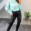 Oversized Tie Ruffle Neck Top in Khaki can be combined with jeans and basic shoes. A nice and simple necklace could be finishing touch on this combine!