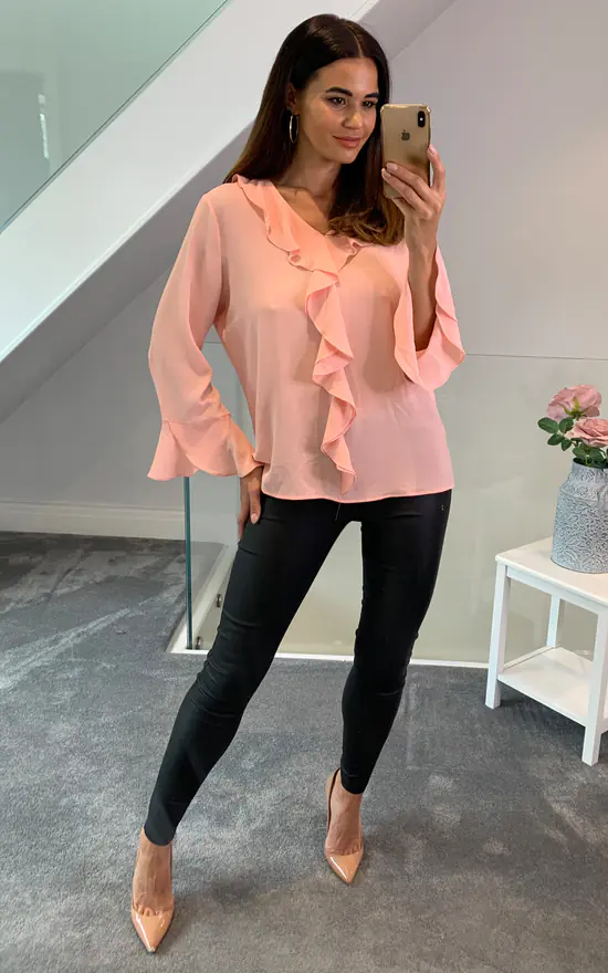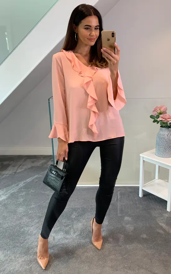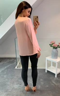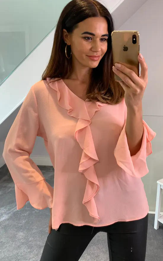 Oversized Top with Frilled Front in Light Pink creates a charming aura around you. Perfect for Spring/Summer nights!