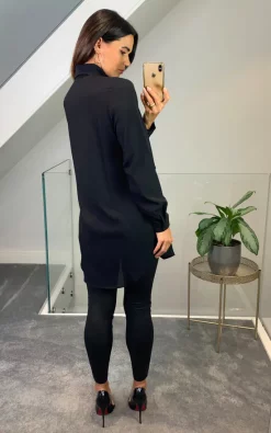 Oversized Tunic Shirt with Tie in Black is a must have piece in Spring/Summer season!