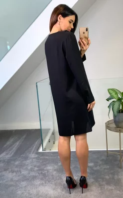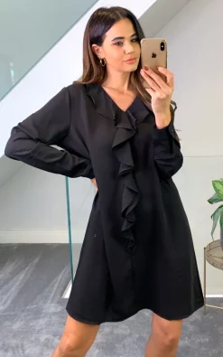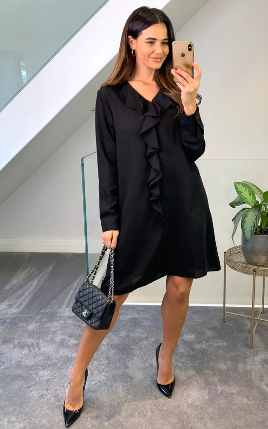 Oversized Tunic with Frill Details is created for being comfy and mod. It can be wear as dress also you can choose tights and pants for active days!